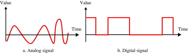 - 아날로그 신호 : 물결 모양 ex. 전화 회선, 라디오 방송 등에서 사용