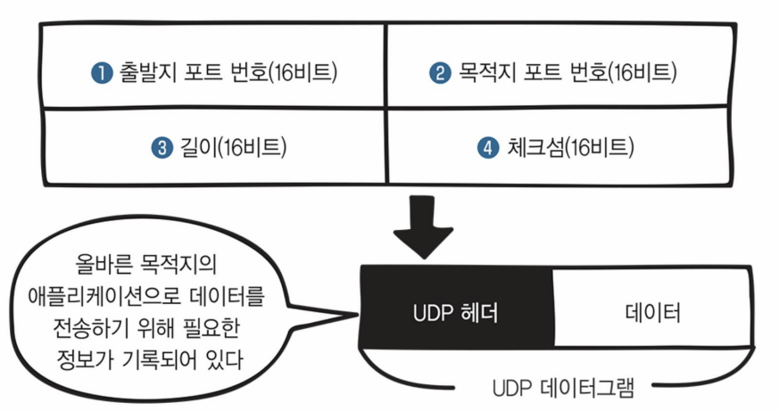 - UDP 데이터그램 : UDP 헤더가 붙은 데이터