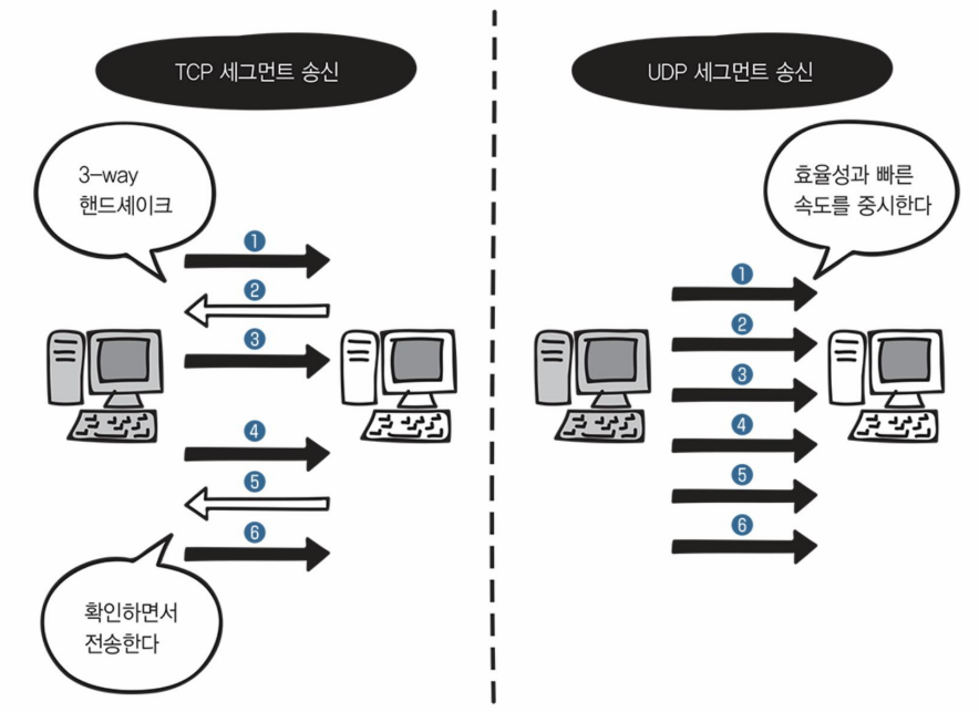 - 효율성 중시 : 데이터를 효율적으로 빠르게 보내는 것이 목적 ex. 동영상 서비스