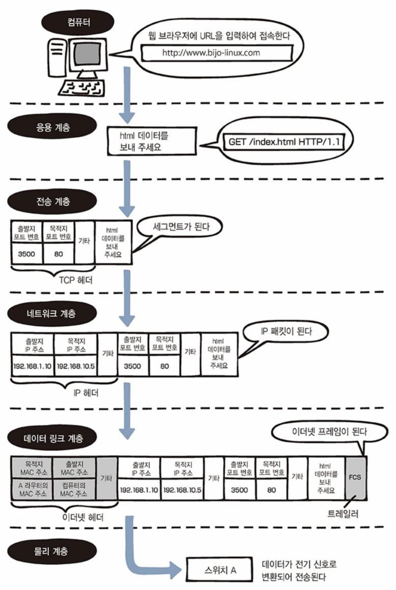 - 웹에 접속할 때 이루어지는 캡슐화와 역캡슐화를 이해한다.