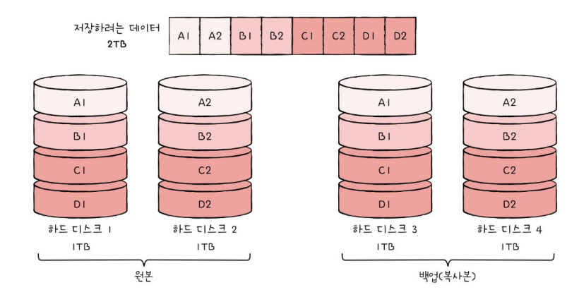 - 미러링 mirroring : 마치 거울처럼 완전한 복사본을 만드는 구성