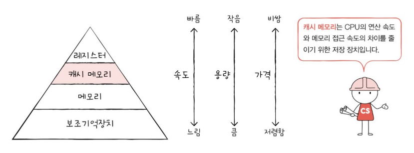- 속도가 빠른 저장 장치일수록 용량이 작고 가격이 비싸다.