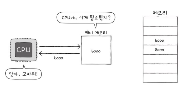 - 캐시 메모리는 CPU가 사용할 법한 대상을 예측해서 저장