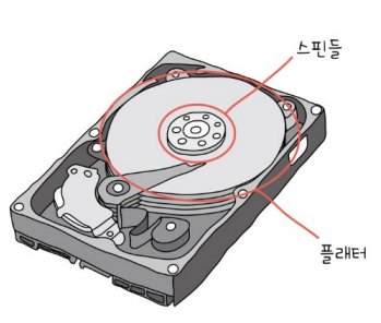 - 플래터를 대상으로 데이터를 읽고 쓰는 구성 요소