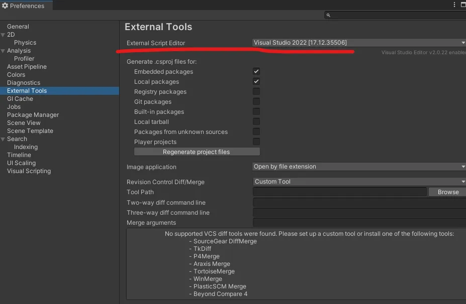 edit - preferences - external tools - external script editor을 vs2022로 설정