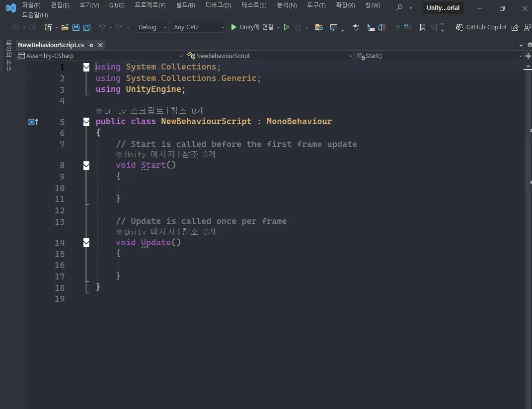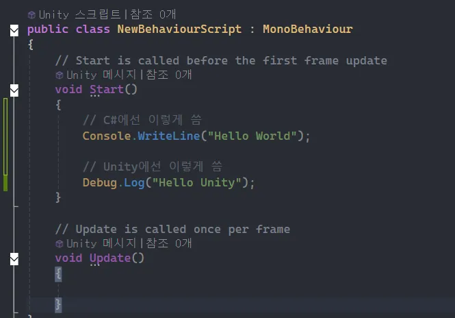 유니티 내부는 C++, 외부는 C#로 이루어져 있음