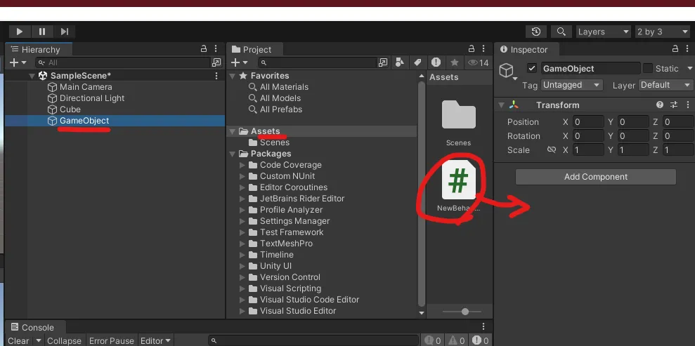 GameObject 클릭 - Assets 클릭 - 해당 스크립트 파일 Drag & Drop