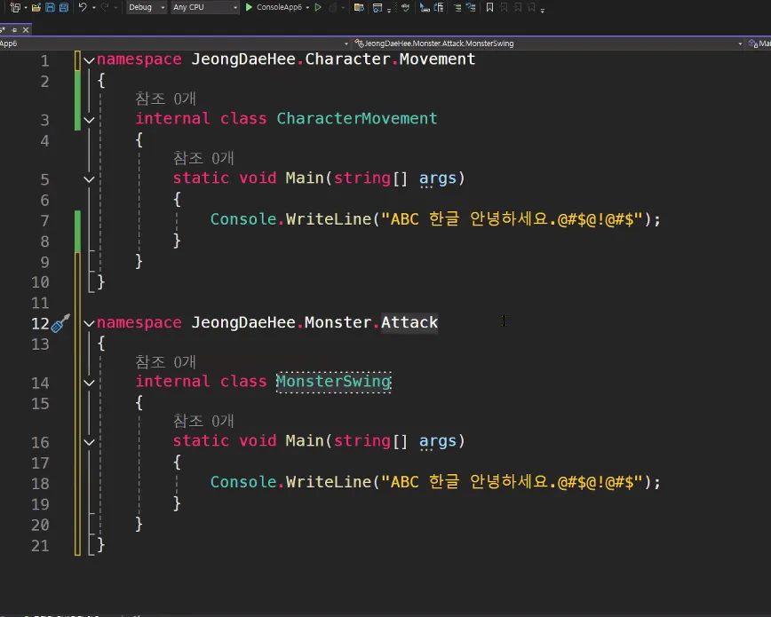 C#은 세미콜론 필수~!