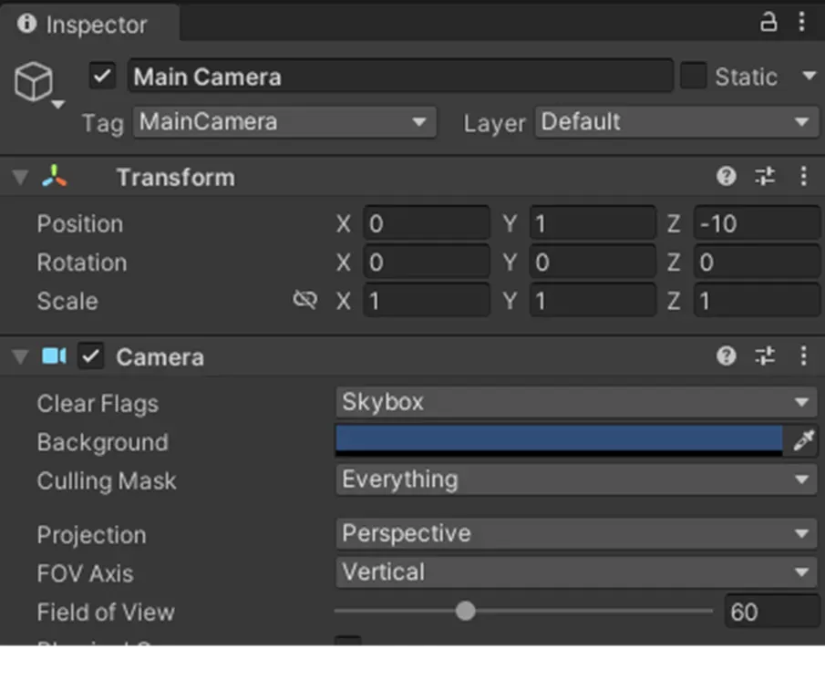 Camera 오브젝트의 상세 정보
