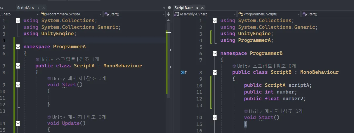 3. using을 사용해 ProgrammerA namespace를 ProgrammerB에서 사용하기
