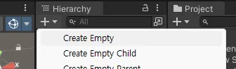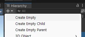 생성은 Hierachy에서 Create Empty