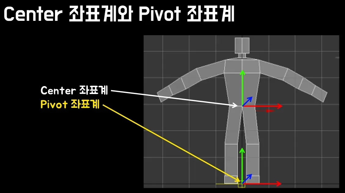 기본적으로 이족 보행 등의 캐릭터는 모델링 할 때 pivot을 잘 잡아서 줘야 함