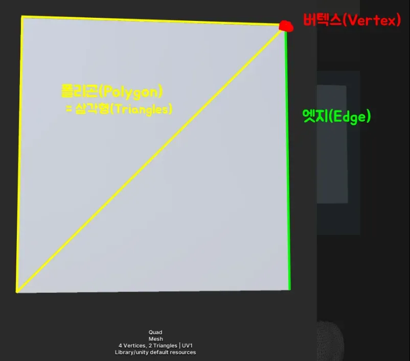 polygon : 면 = 삼각형(면을 구성하는 최소 단위가 삼각형이기 때문에 일반적으로 폴리곤을 삼각형이라고 함)