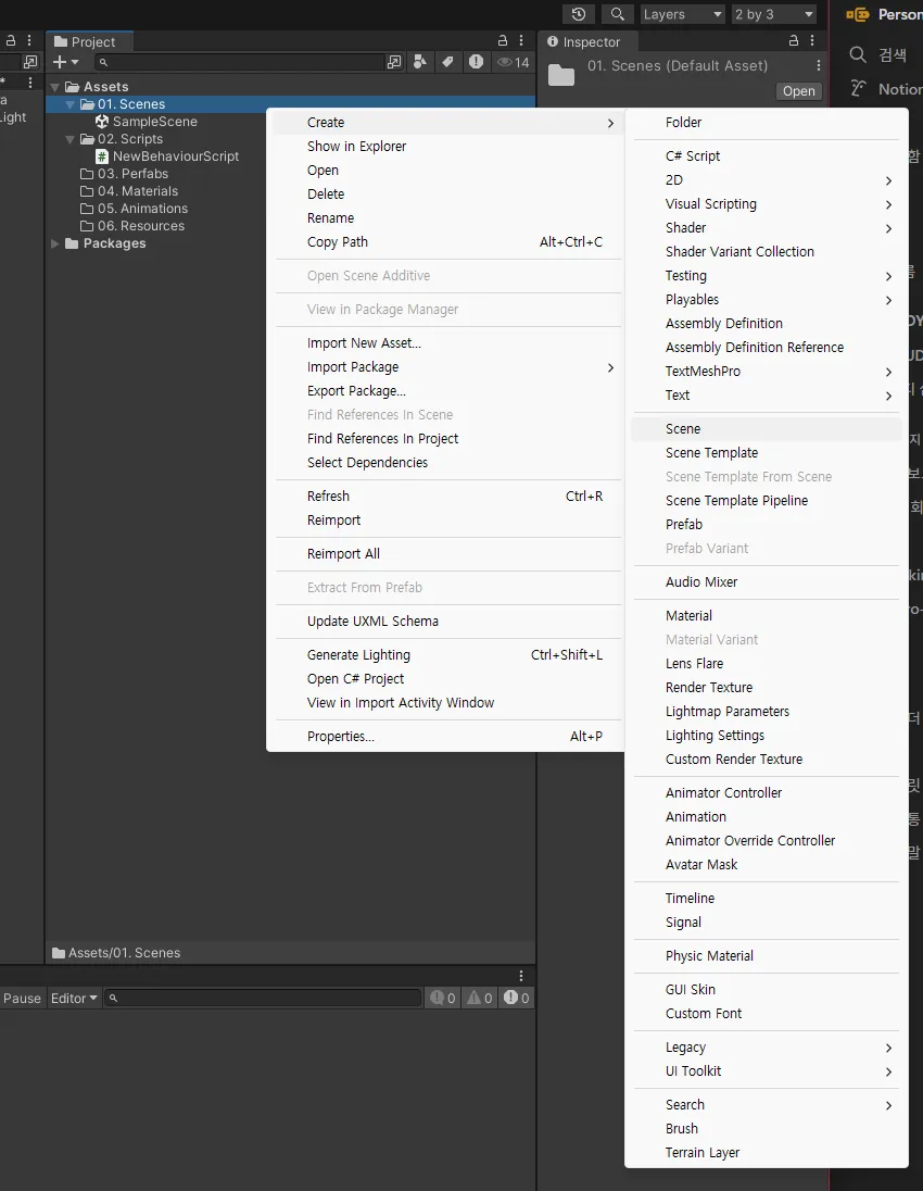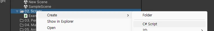 아래 세 개는 이미 유니티에 존재하므로 중복으로 폴더 생성하면 안됨
