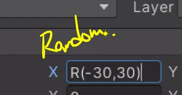 R - random, 랜덤으로 배치 : -30 ~ 30 사이의 값이 무작위로 배치됨