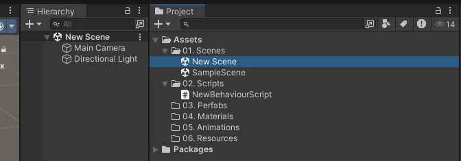 2. 생성한 new scene으로 들어가기