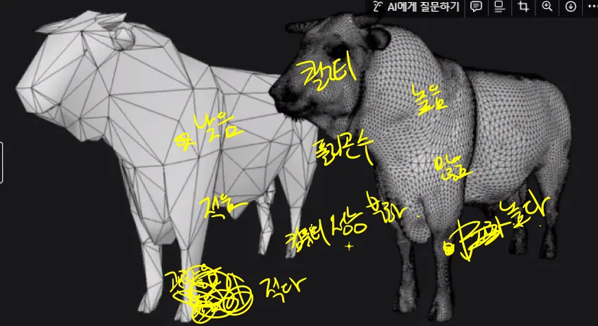 로우Low 폴리와 하이Hight 폴리의 비교