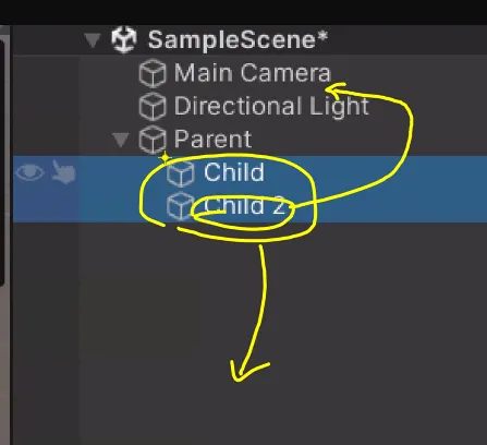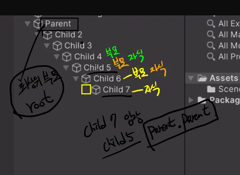 자식 object를 밖으로 드래그해서 뺄 수도 있다 like 레이어 작업