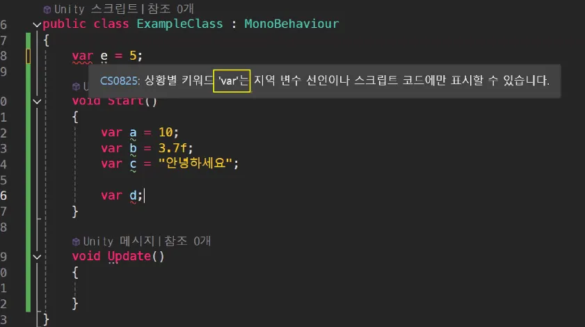 지역 변수 선언으로만 사용 가능