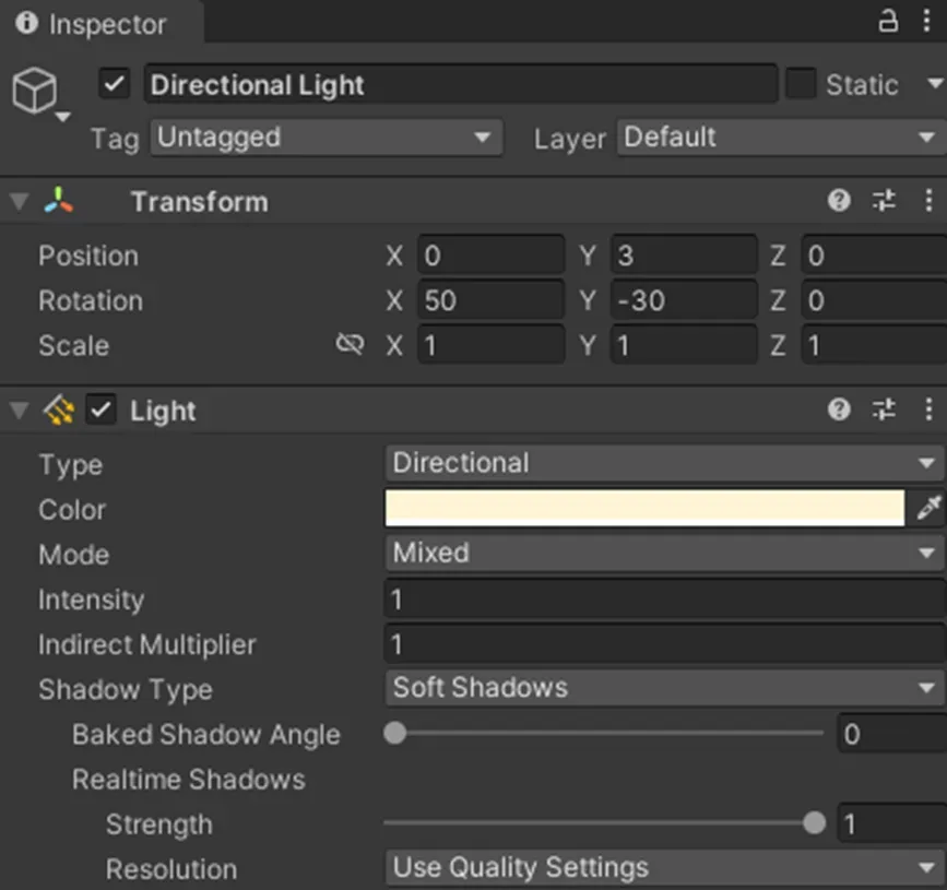 Light 오브젝트의 상세 정보