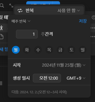 4. 원하는 간격 설정(매일, 매주, 매달 등)