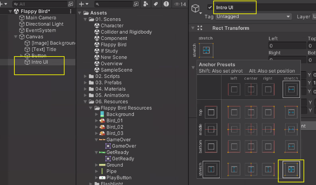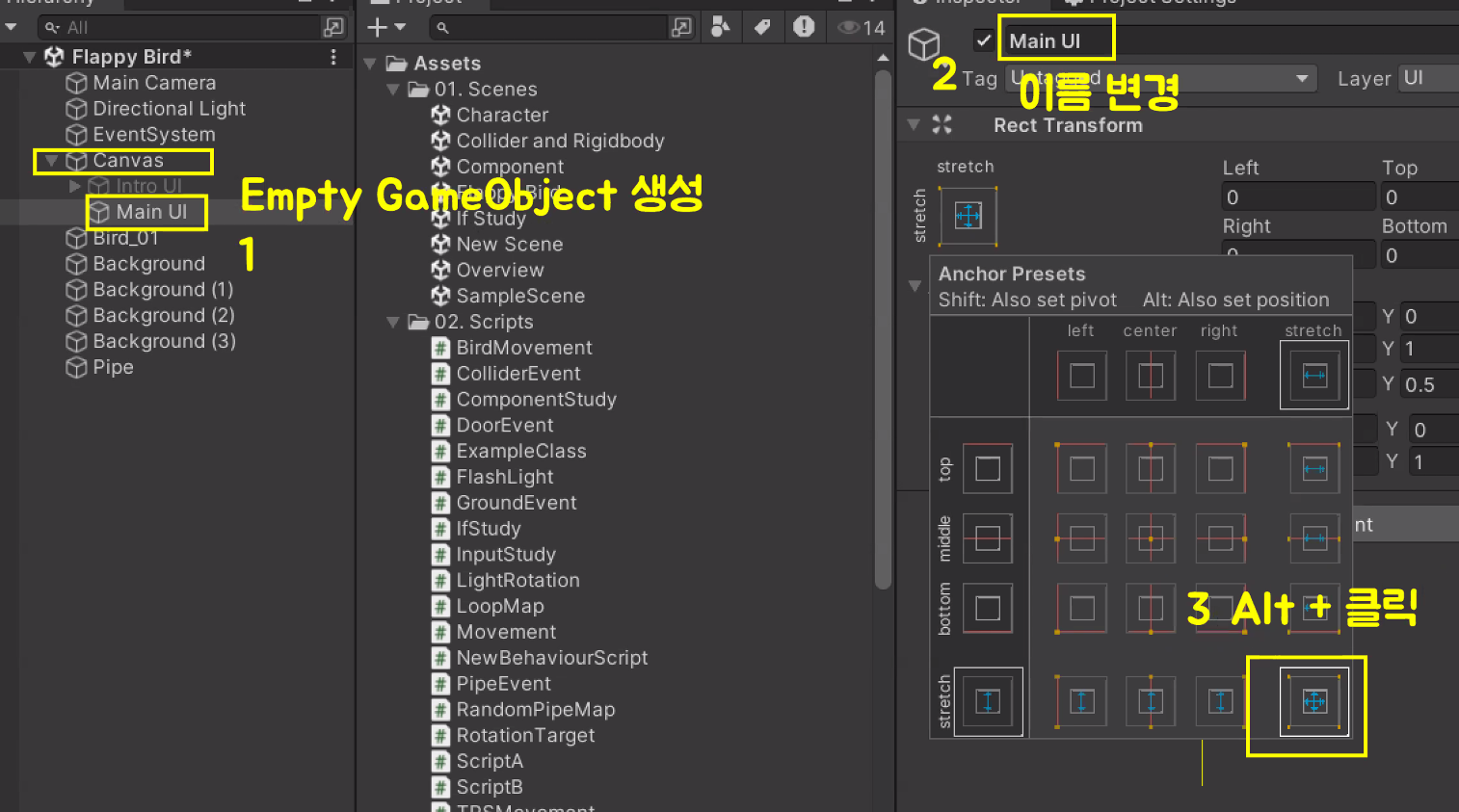 빈 게임 오브젝트 만들어서 화면 채우기