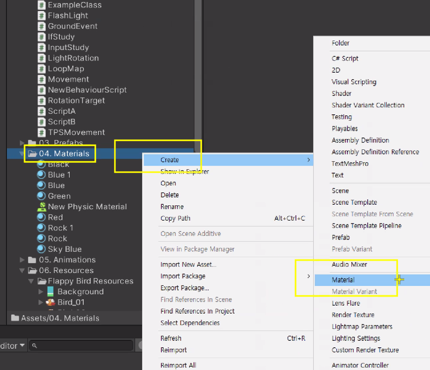 새로운 Material 생성
