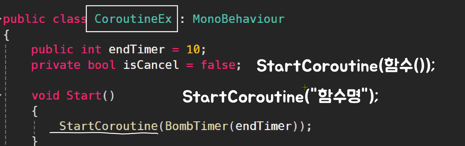 Start 구문에서 호출할 땐 아래처럼 두가지 방법으로 할 수 있음