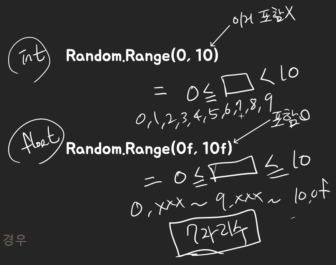 float ranFloat = Random.Range(-3f, 3f); // float 타입의 랜덤 값