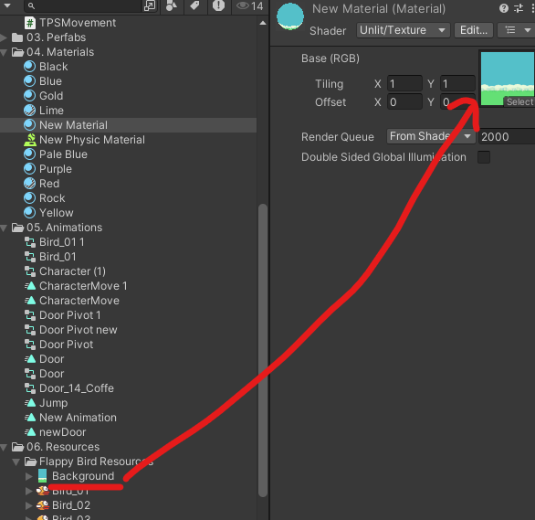 Material에 배경 이미지 할당