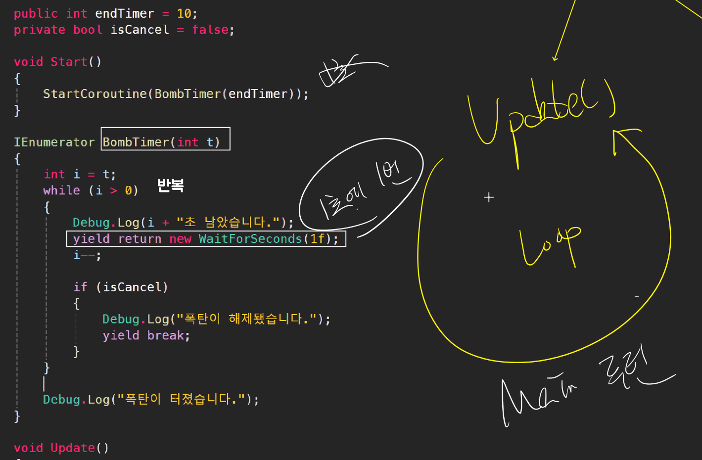 WaitForSeconds 등을 사용해 대기시킬 수도 있음