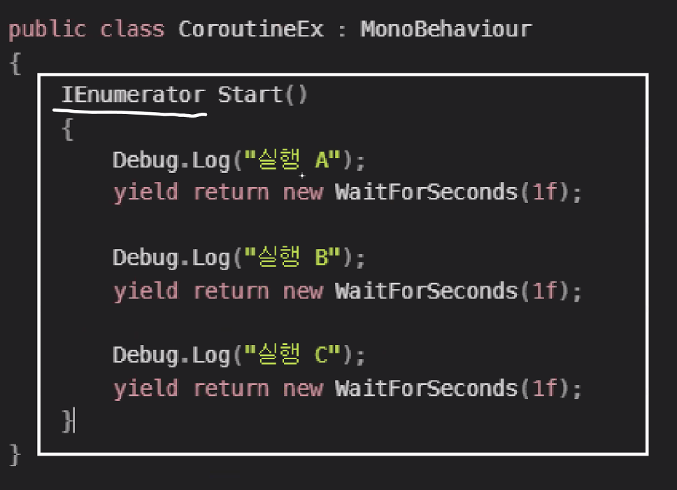 하도 Start에서 많이 써서 IEnumerator(코루틴 타입) 붙이고 Start 쓰면 유니티에서 코루틴으로 인식함