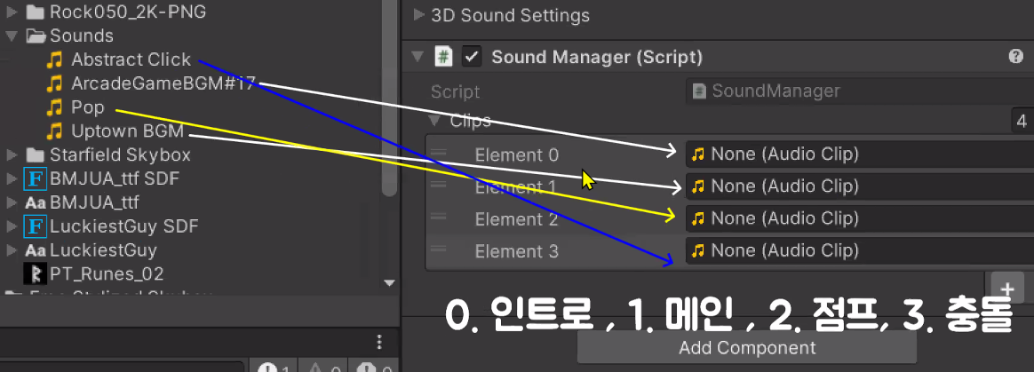 public AudioClip[] clips; // 소리 파일 순서대로 넣을 예정
