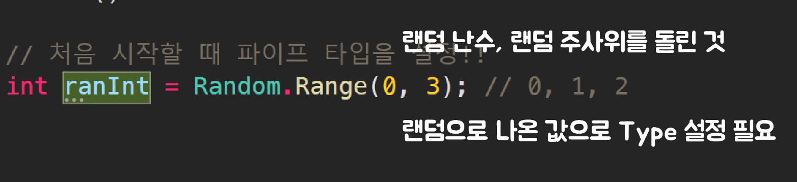 pipeType = (PIPE_TYPE)ranInt; // 형변환(캐스팅)