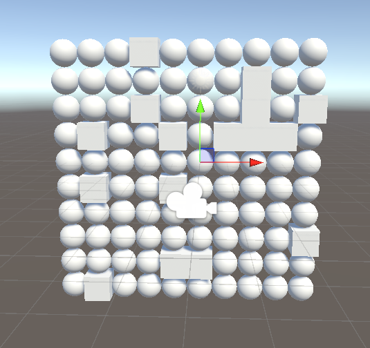 CubeTiles[x, y] = Instantiate(Sphere, new Vector3(x - 5, y - 5, 0), Quaternion.identity);