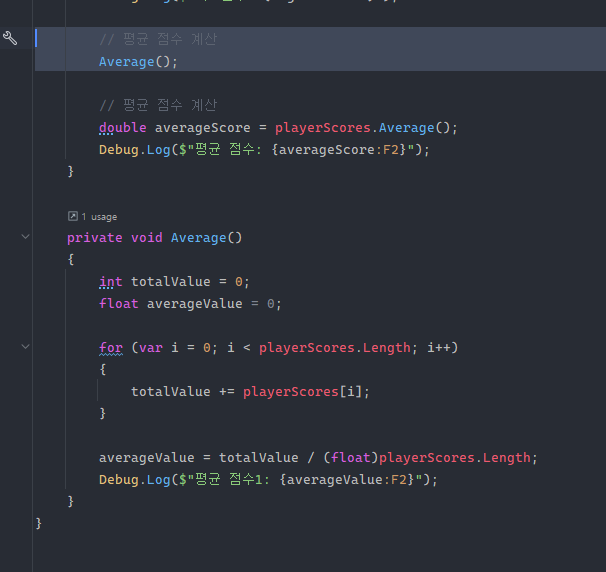 Debug.Log($"평균 점수: {averageScore:F2}");