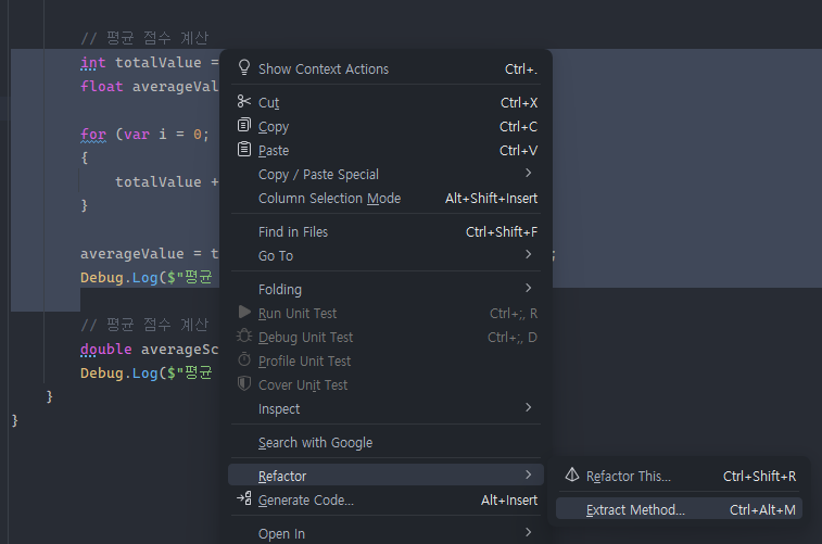함수로 만들고 싶은 부분을 잡고 Extract Method 실행하면