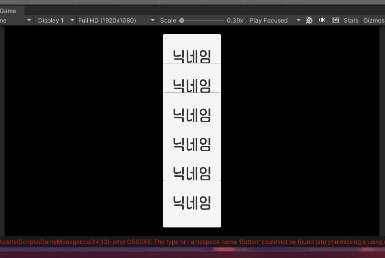 엥? 하고 키니 GameManager.cs의 Button 템플릿에 에러가 있었음