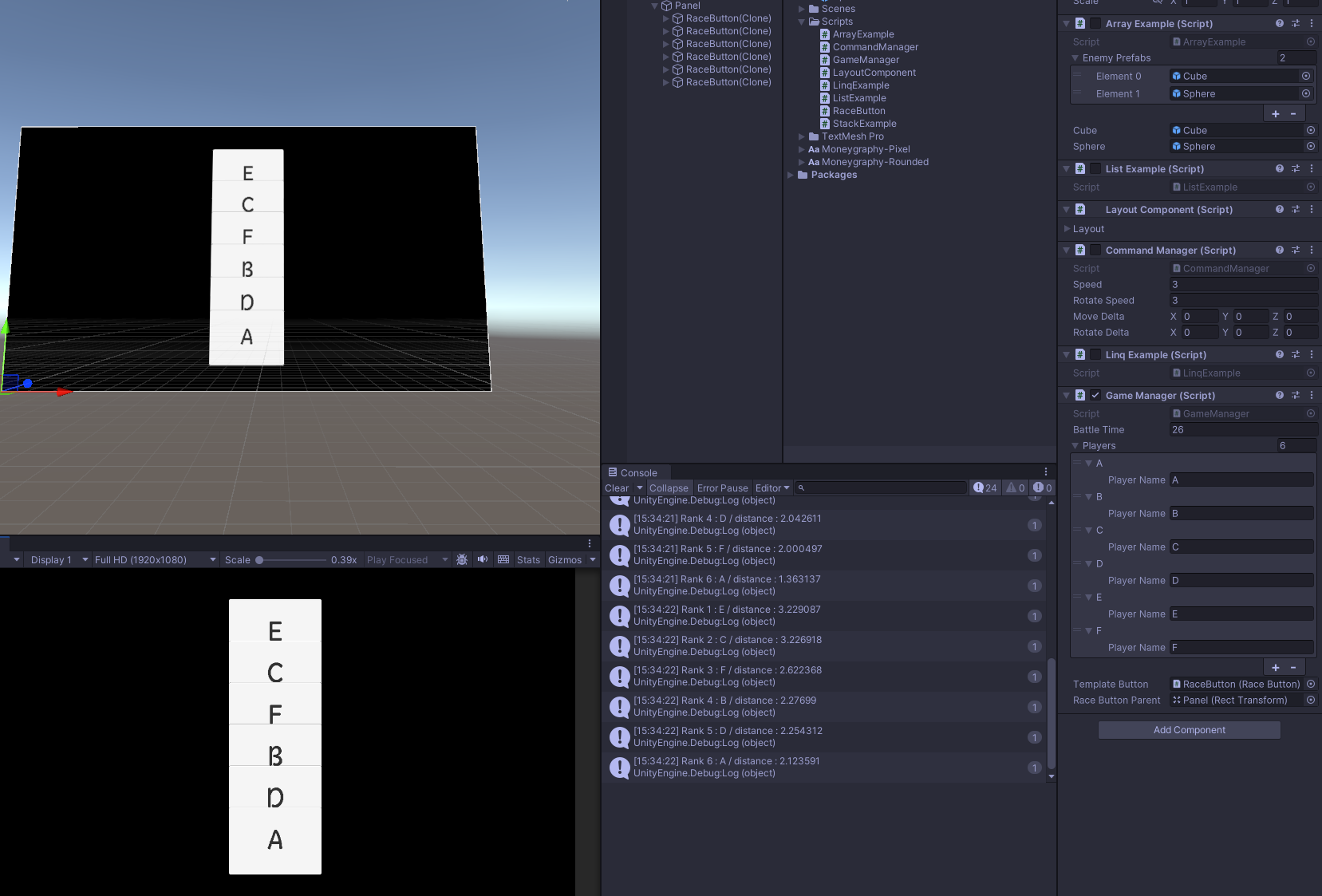 하고 나서 유니티 에디터 가서 Template Button, Race Button Parent에 각각 RaceButton Prefab, Panel 바인딩 해주면 끝