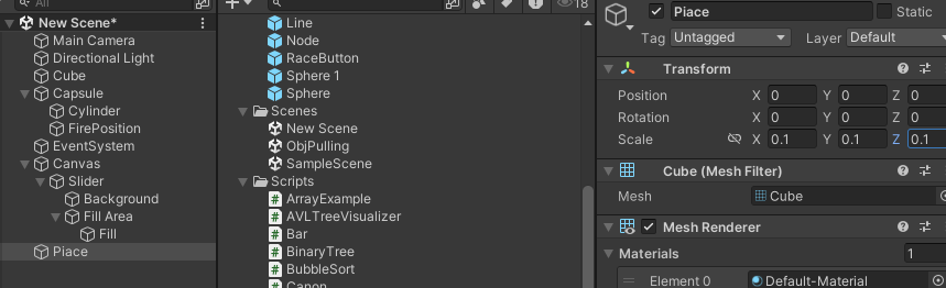 파편 생성(Cube)하고 Prefab으로 만들어준 후 Rigidbody에 넣어주기