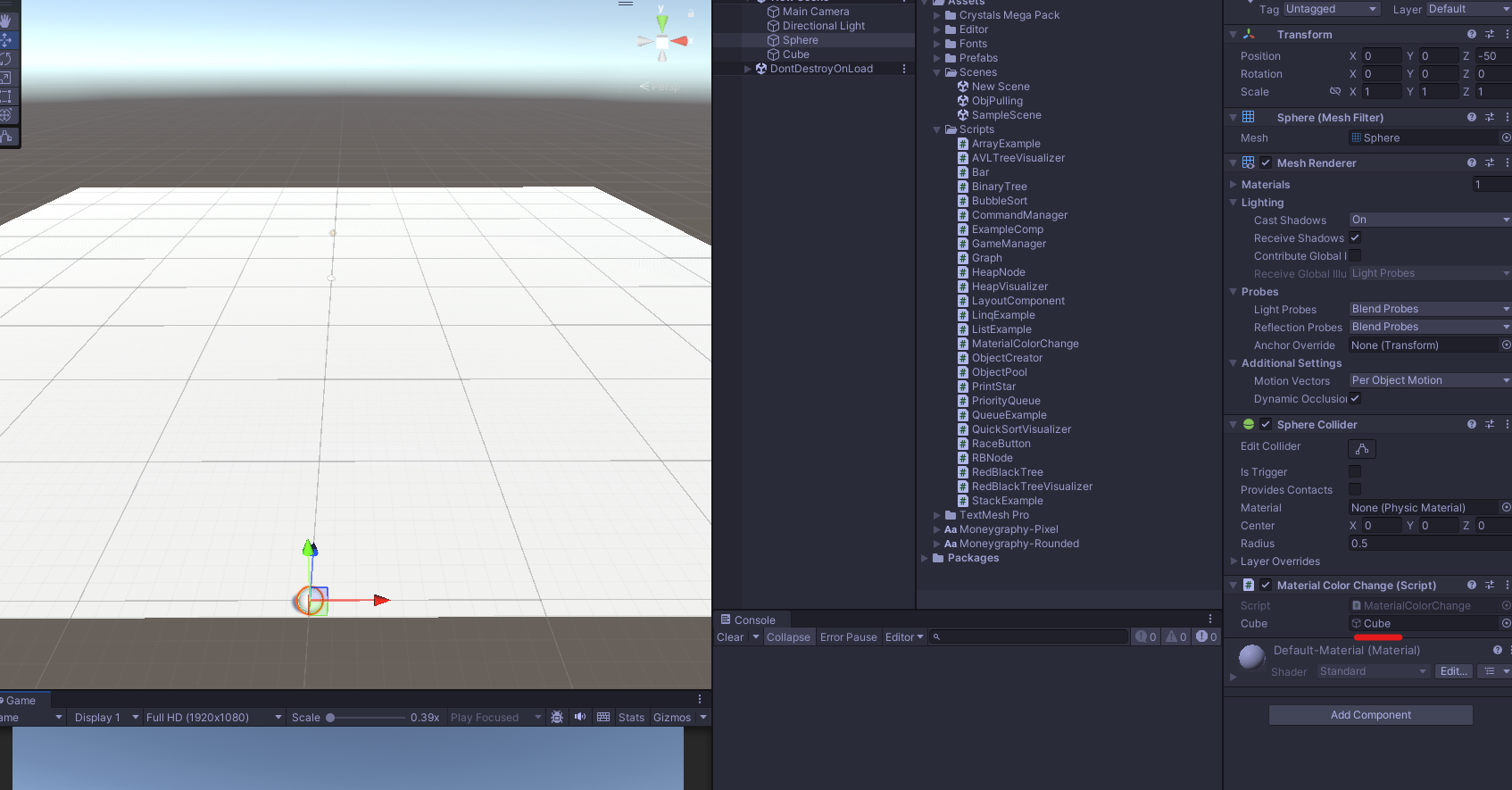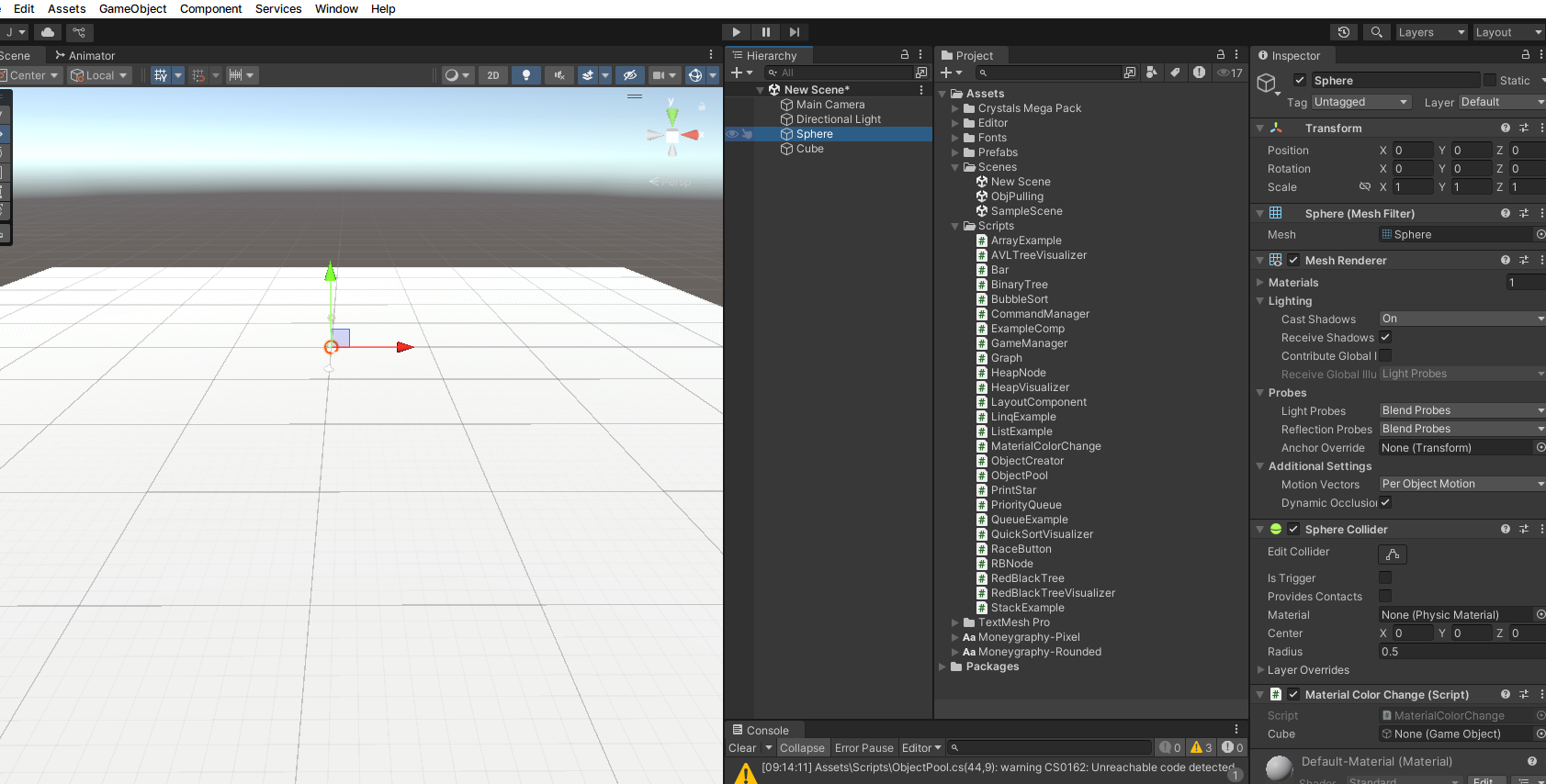 cube 넣고 실행해보면 Sphere가 cube 밖으로 안나가짐