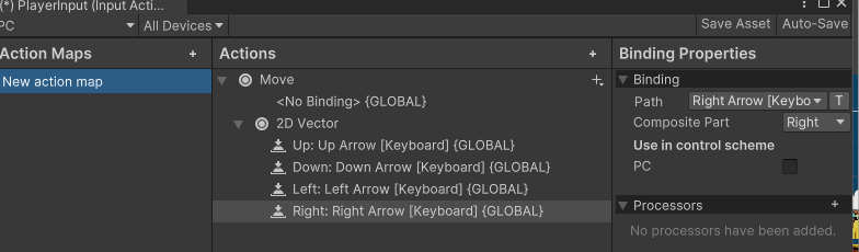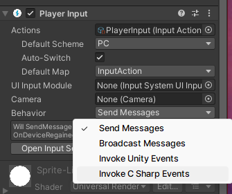 Add Component로 PlayerInput 추가해주고, 아래처럼 설정해줄 것