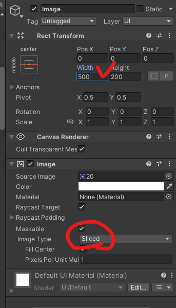 Apply 해주고 Image Type을 Simple -> Sliced로 바꾼 후 Width 조절하면 됨