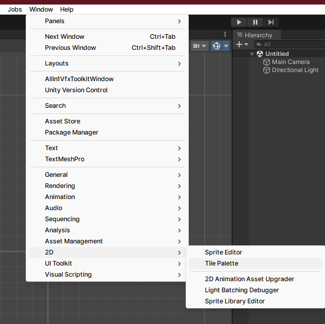 Tile Palette 열기