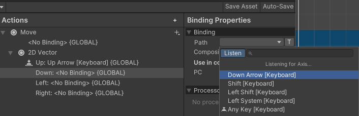 이제 키 바인딩이 필요한데 Listen 누르고 해당 키 누르면 해당 키가 뜸