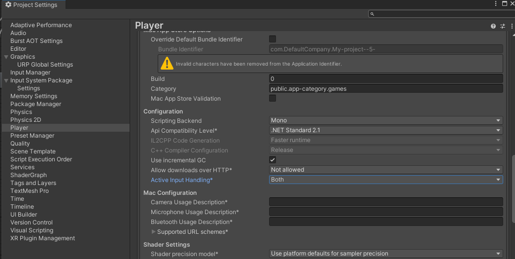 그럼 이제 Editor/Project Settings에서 Active Input Handling을 확인할 수 있음