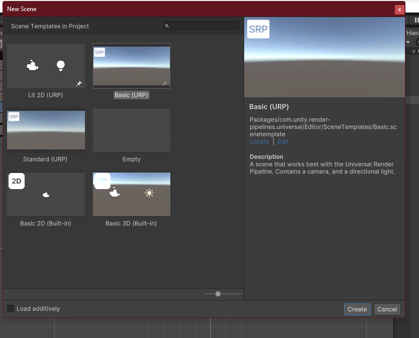 밑에 옵션은 기본으로(Automatic~) 두고 Create하면 위치 지정 창 뜨면서 생성됨