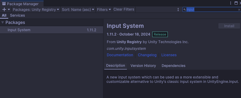 Input System 설치