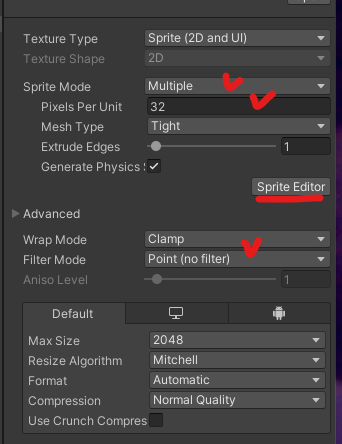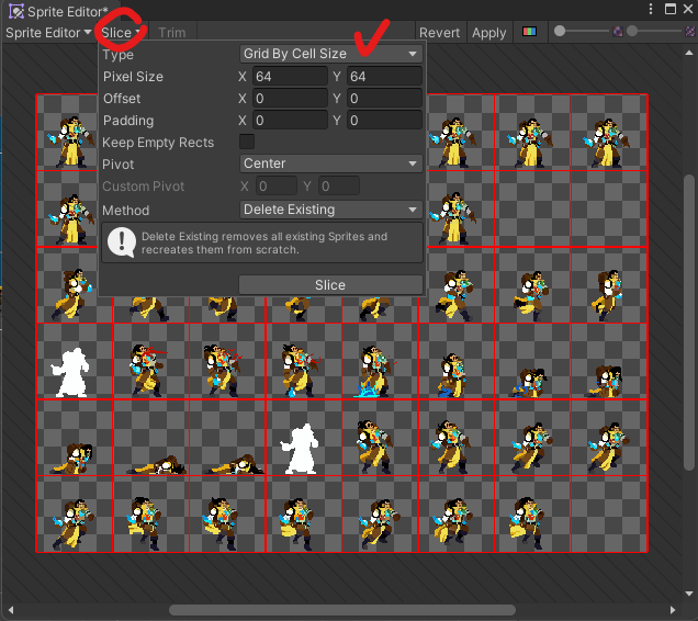 Sprite Editor에서 Cell 사이즈로 나눠주기