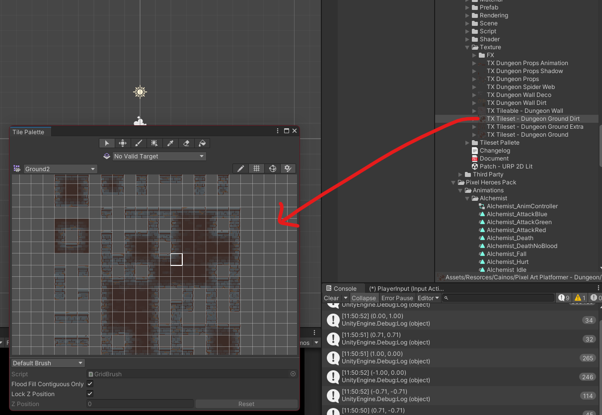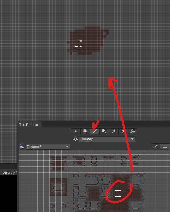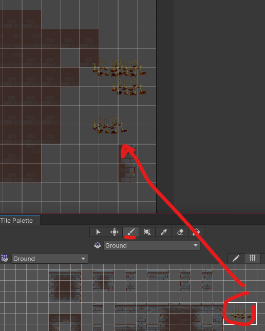 Tile Palette에서 붓 선택 후 원하는 타일 누르면 그려짐